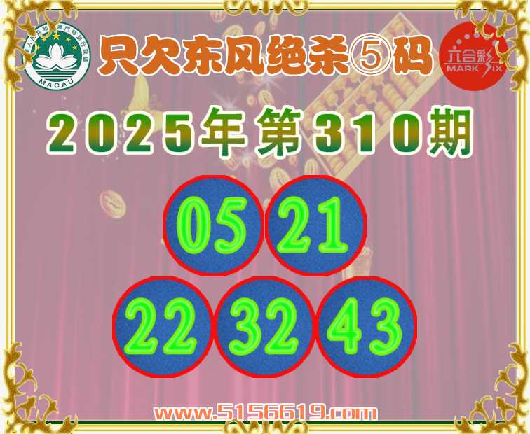 310期:〖只欠东风〗 ✌️绝杀⑤码✌️【05.21.22.32.43】开:00准
