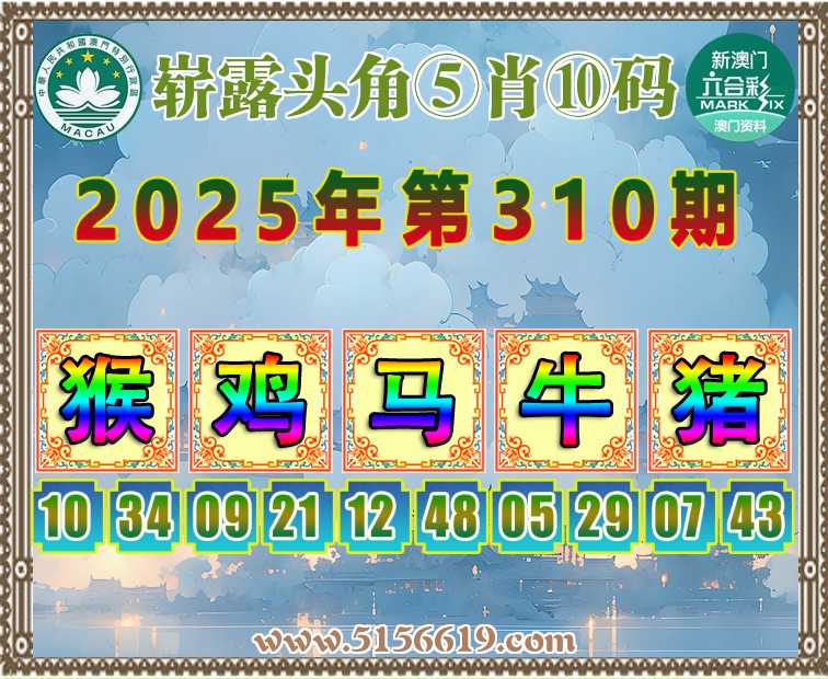 310期:《崭露头角》 🚵‍♀️⑤肖⑩码🚵‍♀️【猴鸡马牛猪】开:00准