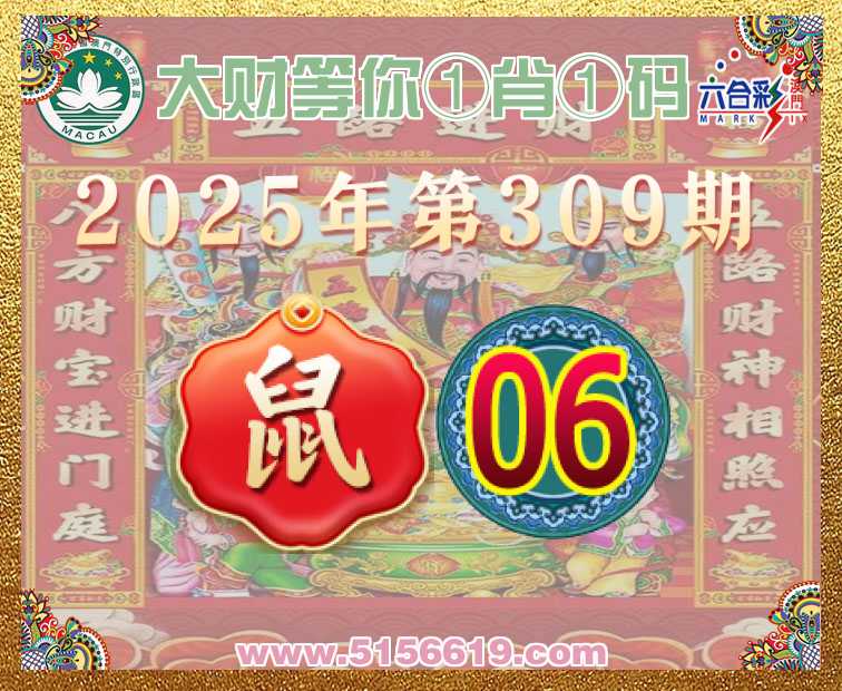 309期:【大财等你】 🧏‍♀️①肖①码🧏‍♀️【】【06】开:鼠06准上榜高手