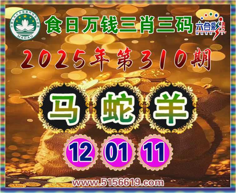 310期:【食日万钱】 🚲三肖三码🚲【马蛇羊】【12.01.11】开:00准