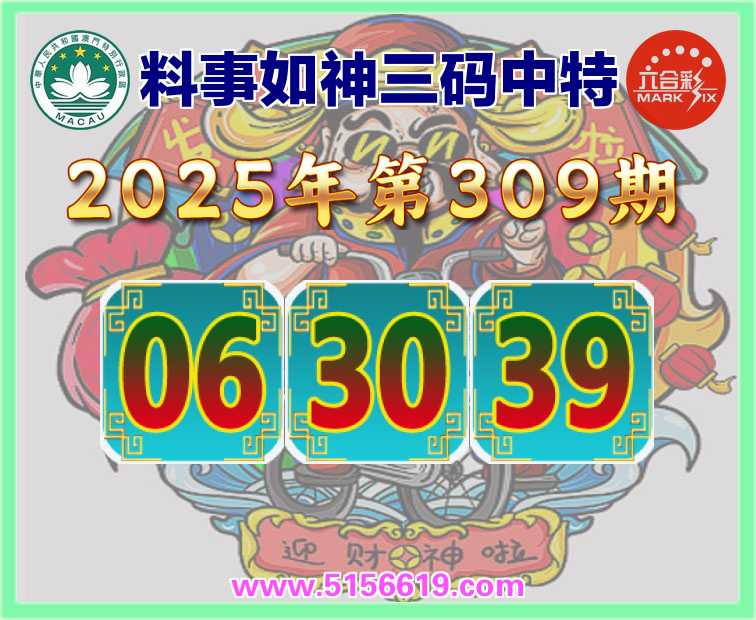 309期:『料事如神』 🥽三码中特🥽【06.30.39】开:06准上榜高手