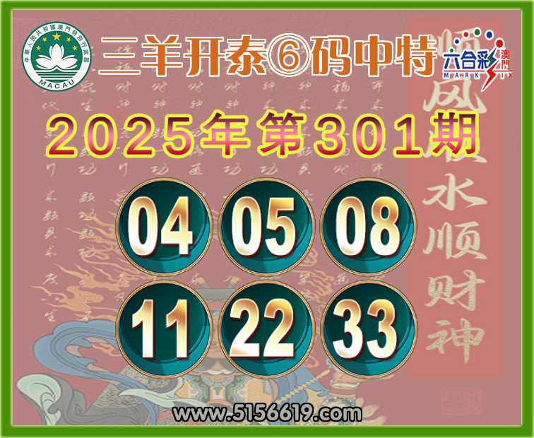 301期: 三羊开泰 ⑥码中特⚽【04.05.08.11.22.33】开:05
