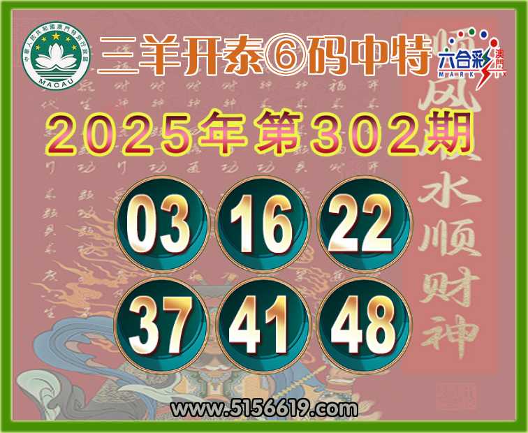 302期: 三羊开泰 ⑥码中特⚽【03.16.22.37.41.48】开:22
