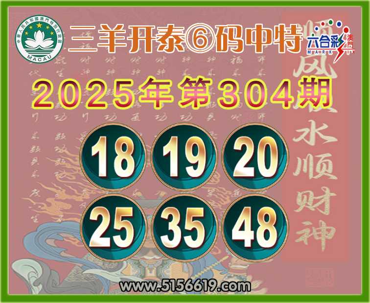 304期: 三羊开泰 ⑥码中特⚽【18.19.20.25.35.48】开:48
