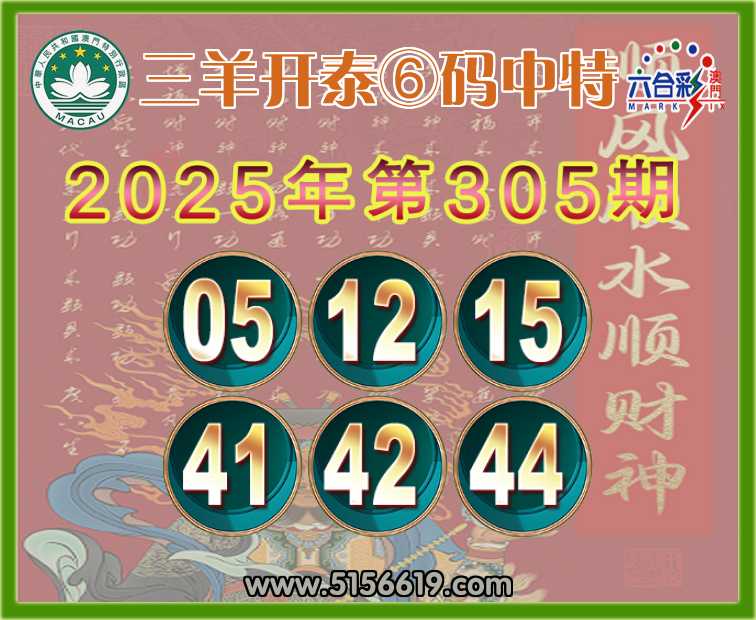 305期: 三羊开泰 ⑥码中特⚽【05.12.15.41.42.44】开:42