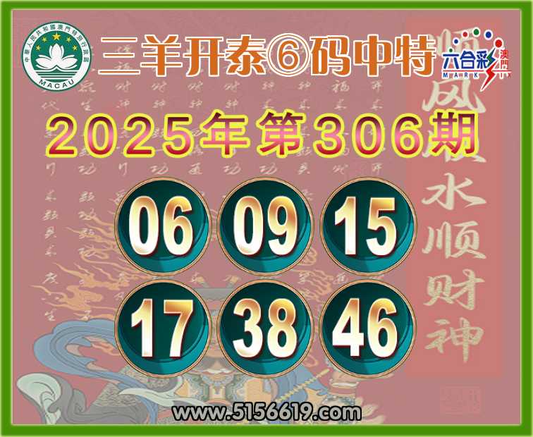 306期: 三羊开泰 ⑥码中特⚽【06.09.15.17.38.46】开:17