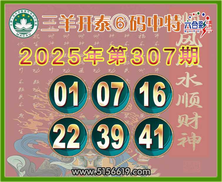 307期: 三羊开泰 ⑥码中特⚽【01.07.16.22.39.41】开:20