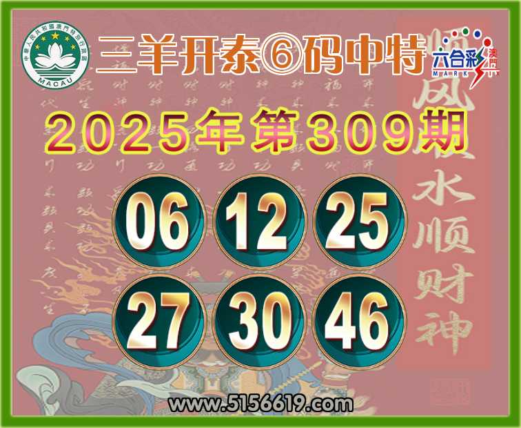 309期: 三羊开泰 ⑥码中特⚽【06.12.25.27.30.46】开:06准上榜高手